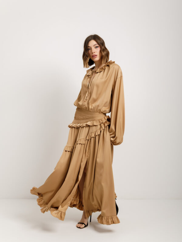 Abito lungo con rouches e bottoni – R12707