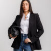 Blazer monopetto, sartoriale, manica lunga con spallina strutturata, rever classico e vestibilità slim, tasche frontali.