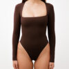 Body in lycra by ALTHÉA, interamente doppiato, manica lunga, aderente effetto second skin, scollo quadrato frontale, chiusura con ganci regolabili. Elastico