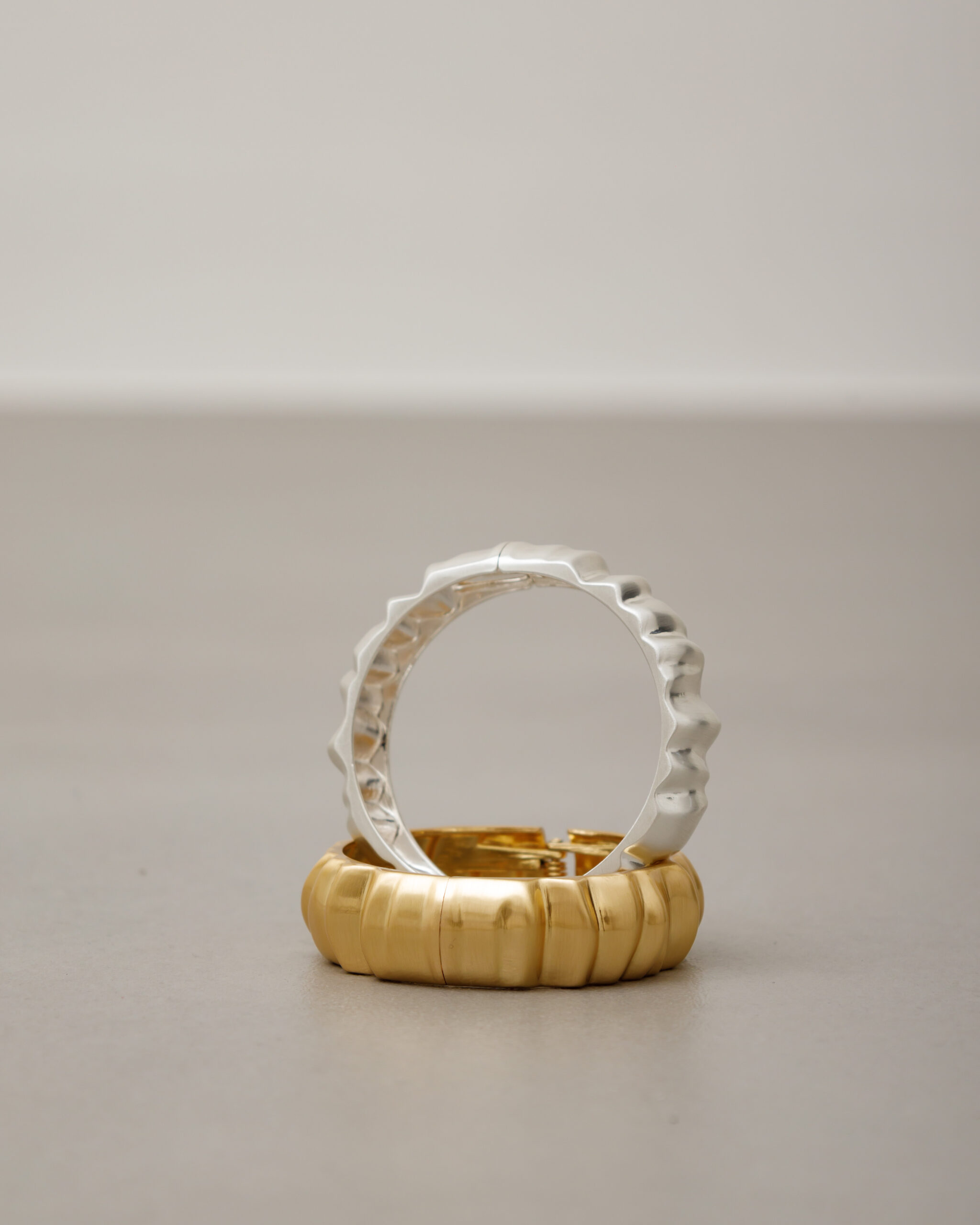 Bracciale in acciaio, rigido, intarsiato, modello manetta, chiusura a scatto