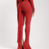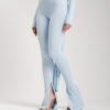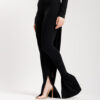 Leggings ALTHÉA in tessuto elasticizzato . Vita alta con bustino definisce il punto vita, lunghezza alla caviglia, orlo a zampa con spacchetto, aderente.