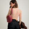 Maglia in tulle, manica lunga, girocollo, stampa cuori, trasparente, lunghezza regolare, elastica