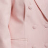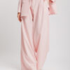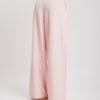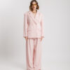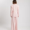 Tailleur in misto cotone, composto da blazer manica lunga, colletto a revers, spallina imbottita, chiusura frontale doppio petto, lunghezza regolare, foderata. Pantaloni vita alta, modello palazzo, pinces frontali, chiusura con bottone e zip. Non elastico