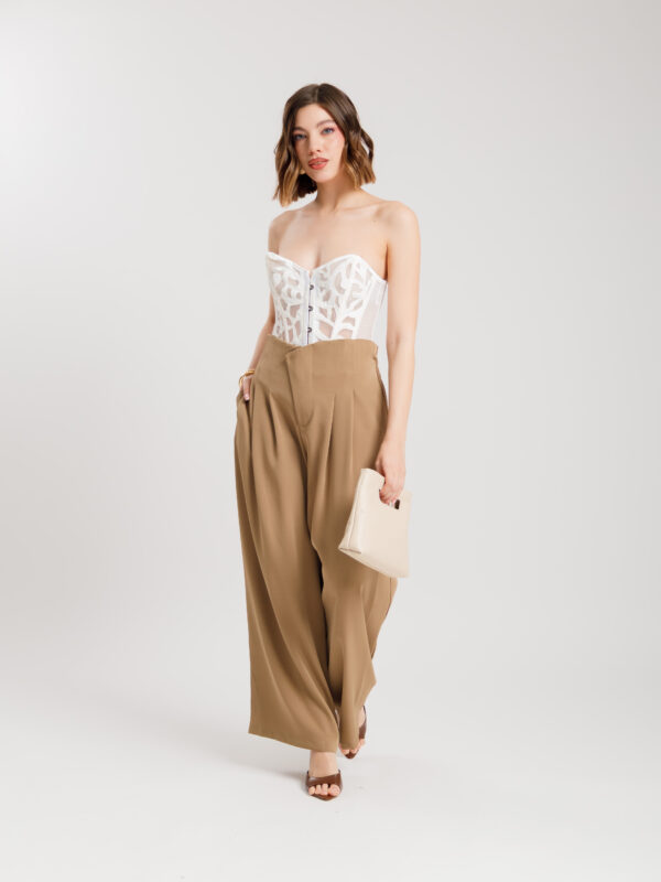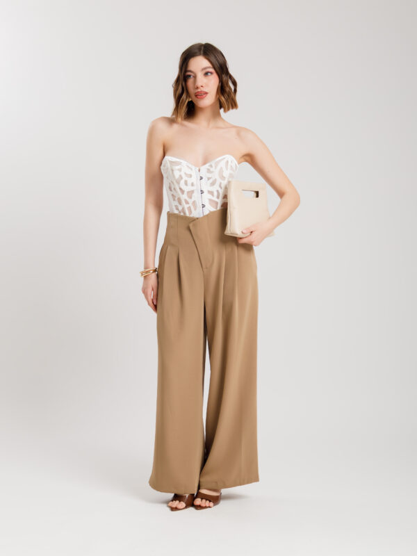 Pantaloni palazzo con pieghe MARRONE – KLL1