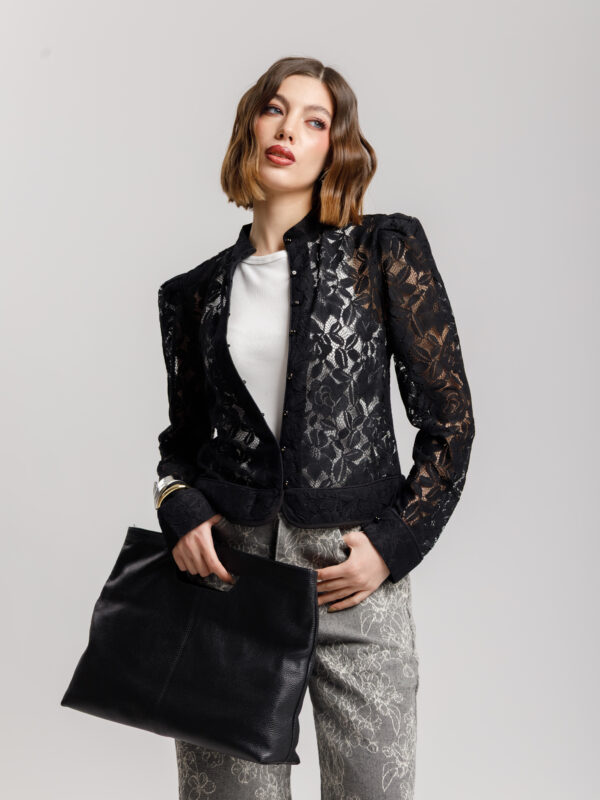 Blazer con collo alto TARTAN GRIGIA – MIRY